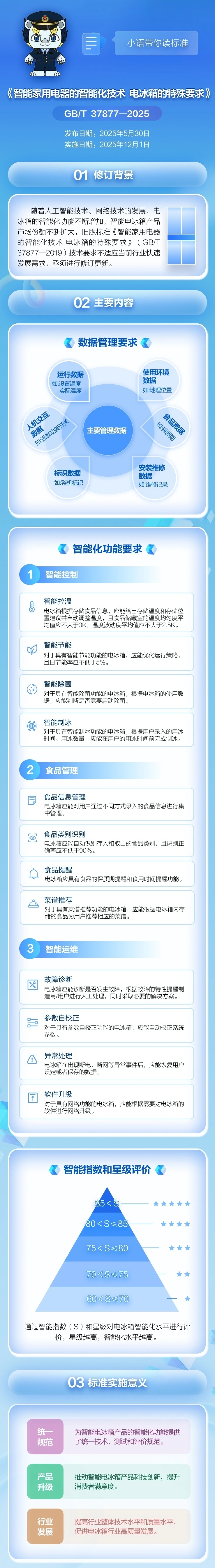 新标准的发布实施,将为智能电冰箱产品的智能化功能建立了统一的技术规范、测试准则与评价标准,更将有力驱动行业技术创新迭代,促进智能电冰箱行业技术升级与质量提升,为智能家电产业高质量发展注入强劲动能。